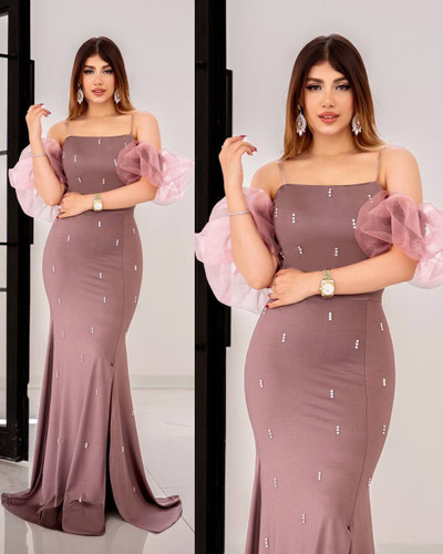 پیراهن بلند مجلسی سلین😍جنس کرپ غواصی کره ای به همراه نگین پایه دار( بدون ریزش پانچ شده) تنخور عالی