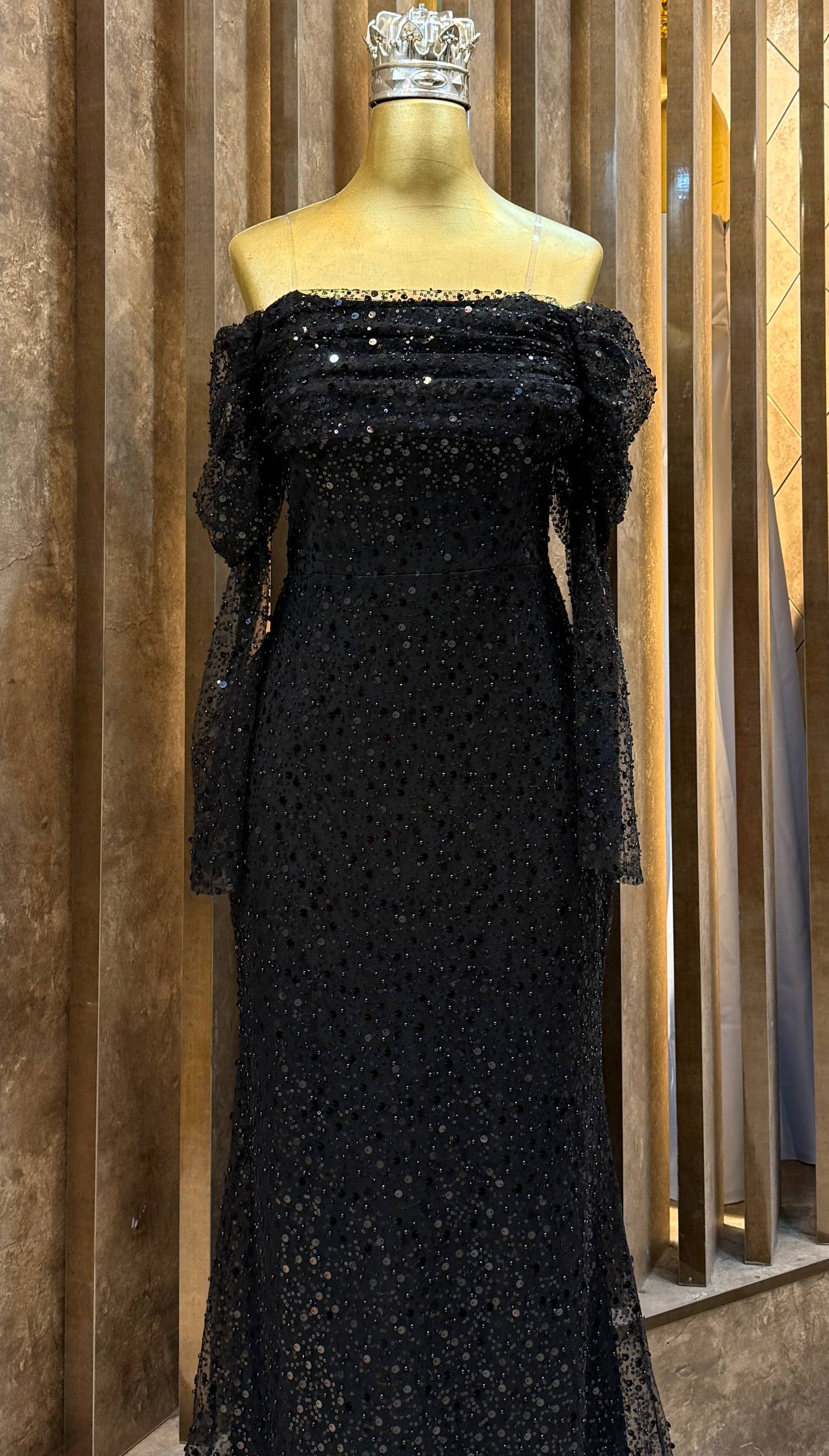 پیراهن پارچه ابروبادی پولک دار زیبا و شیک در رنگ جذاب مشکی 😍🖤