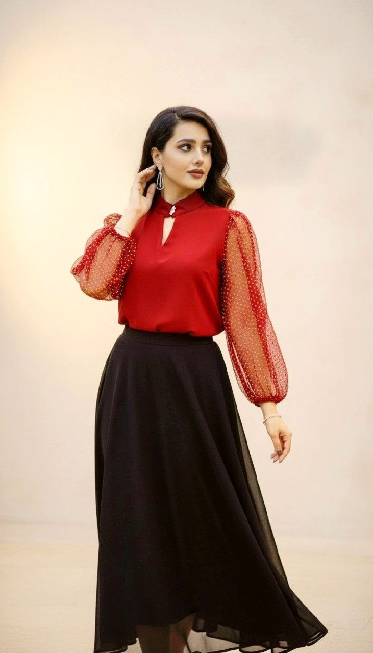ست شومیز دامن قلبی یلدا 🍒🍉 شیک و زیبا 🤩 کد9102