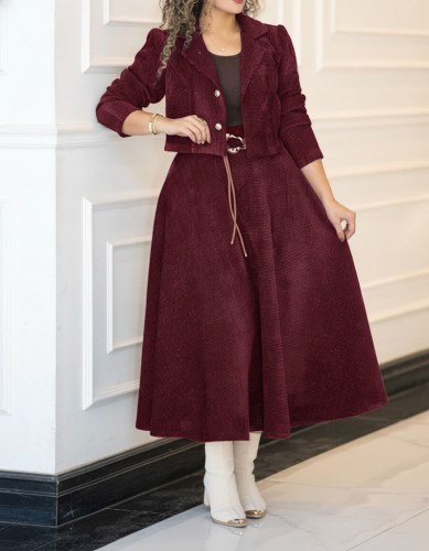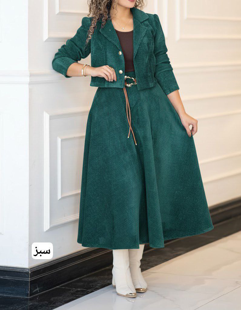 ست زیبای کت و دامن دنیا جنس مخمل کبریتی شیک کد 97490✅🛍️