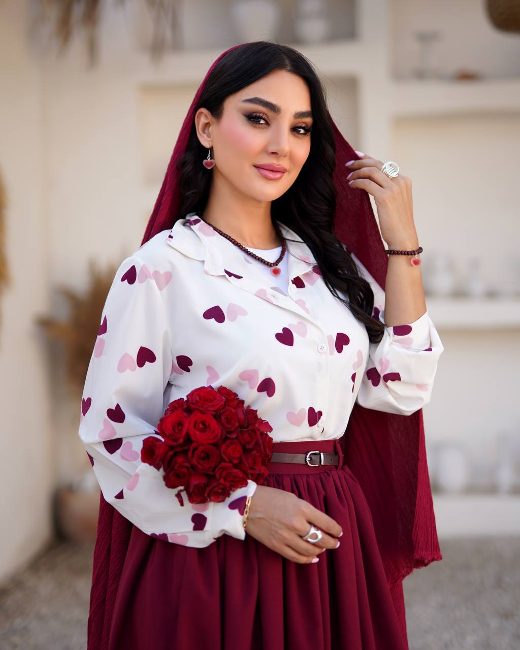 ست شومیز دامن قلبی یلدا 🍒🍉 شیک و زیبا 🤩 کد9102