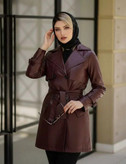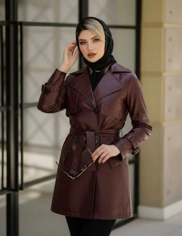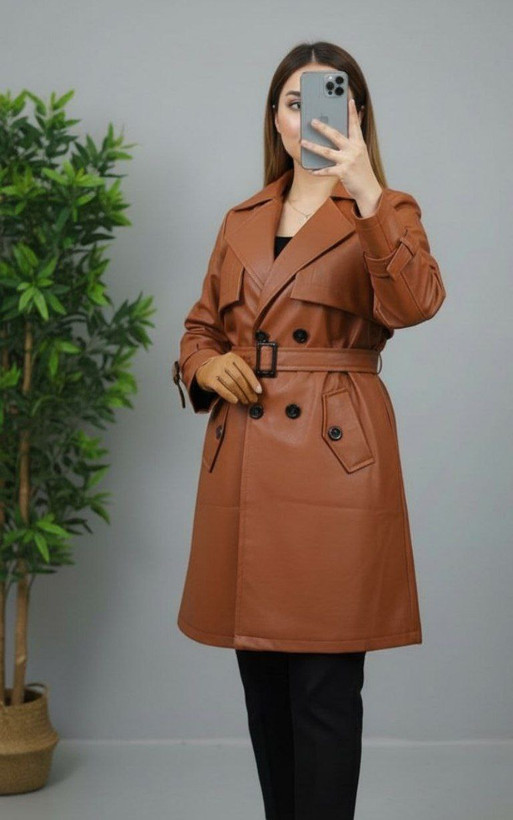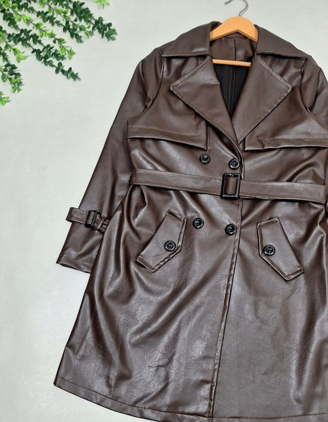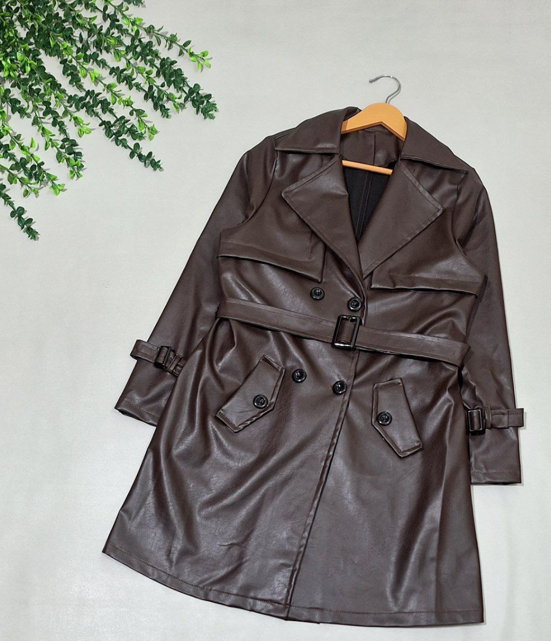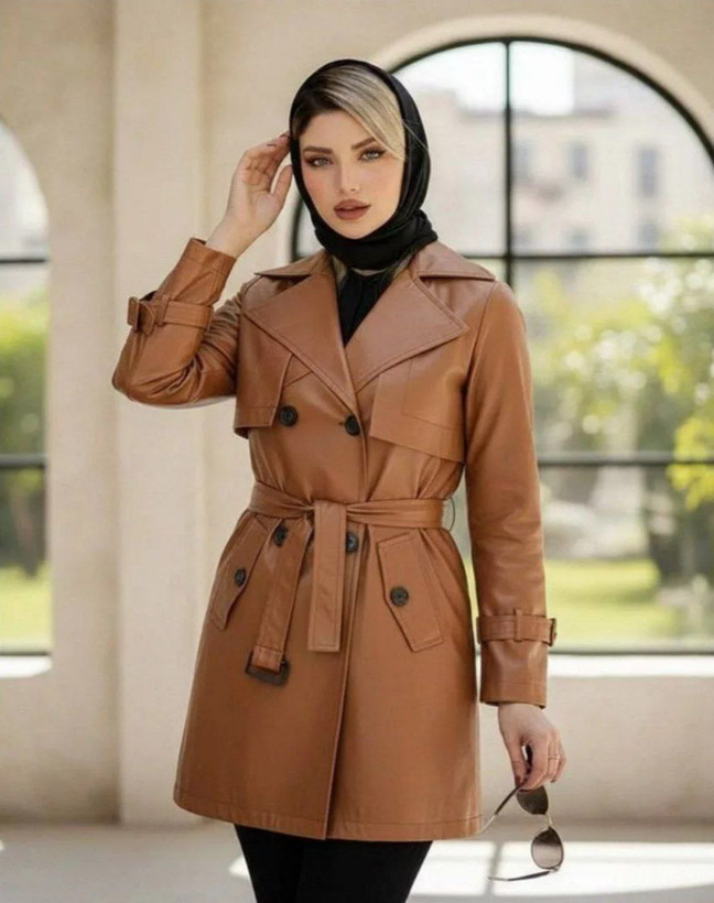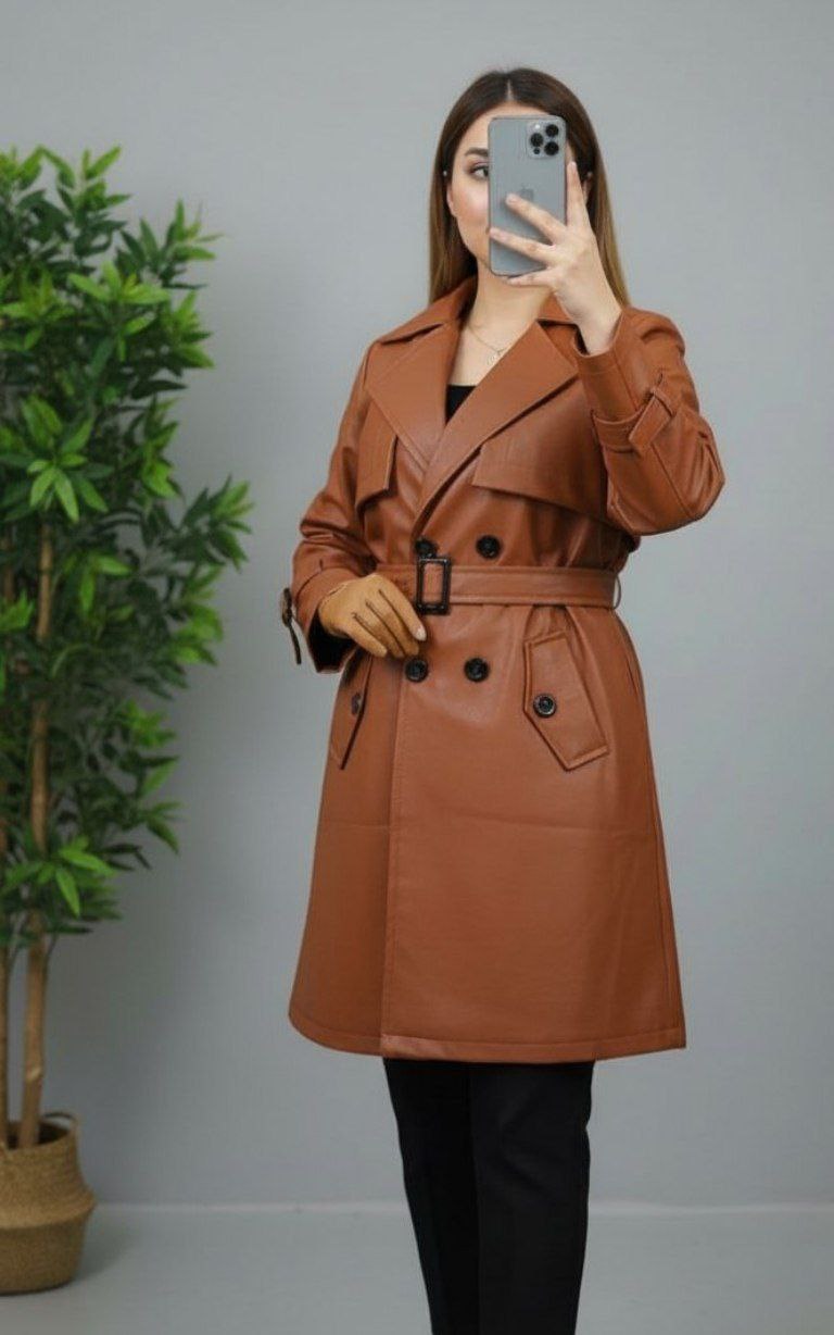 مانتو چرم آسو 🎀🤩 جنس چرم با کیفیت و رنگ بندی پاییزی✨کد7514