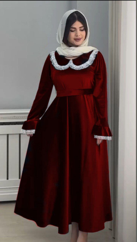 پیراهن مخمل انار بانو گرم بالا و گوگولی کد 92269✨😍🎀
