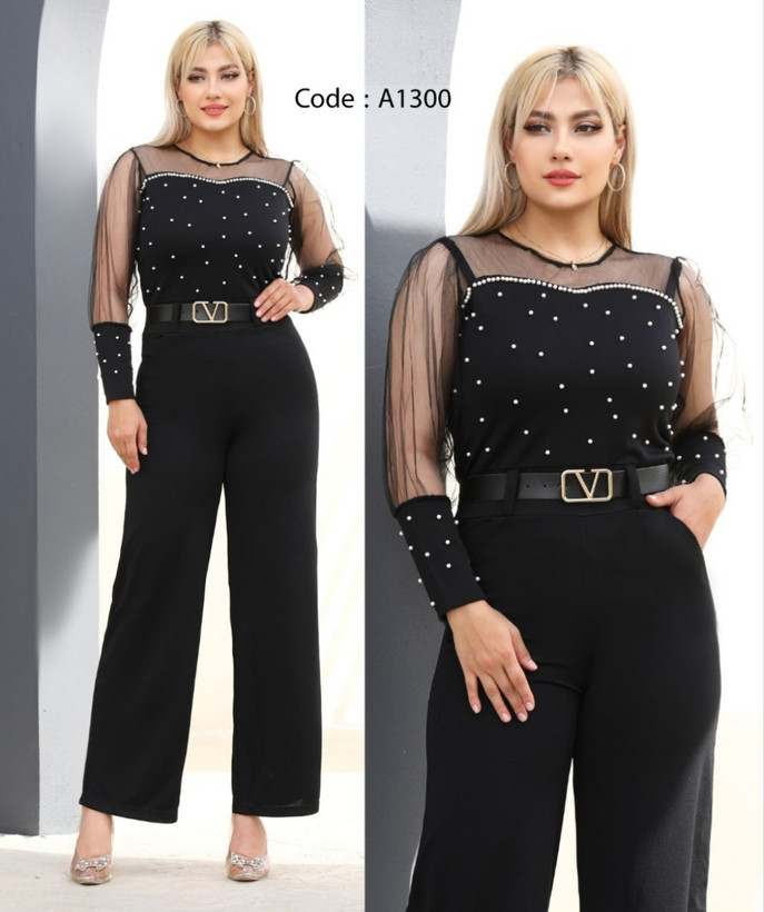 اورال مجلسی جلوتنه تمام مروارد دوزی شلوار دمپا گشاد با کمربند🤩
